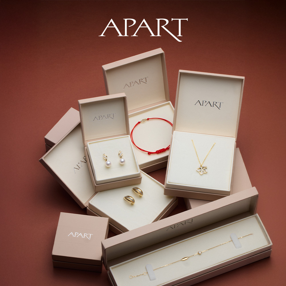 Apart to lider jubilerstwa na polskim rynku, który swoją niekwestionowaną pozycję buduje od blisko 50 lat. Marka posiada ponad 280 salonów, głównie w największych centrach handlowych w całej Polsce. Apart jest ceniony za największy wybór biżuterii z diamentami, kamieniami szlachetnymi, złotej i srebrnej; klasycznej, a także modowej. W salonach marki są dostępne zegarki luksusowe, premium i marek popularnych, a także smartwatche. Warte uwagi są obecne tylko w Apart marki Artelioni, Elixa i Aztorin z szeroką ofertą dodatków dla niej lub dla niego oraz akcesoriów, takich jak jedwabne apaszki czy okulary przeciwsłoneczne z logo Elixa. Apart to marka najchętniej wybierana przez kupujących, którzy poszukują prezentu na szczególne okazje.